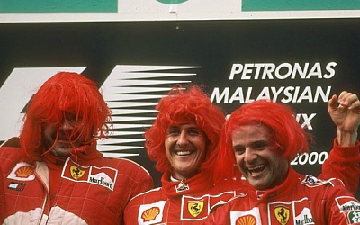 Чтобы отпраздновать завоевание Кубков пилотов и конструкторов, было принято решение раздать всем членам команды красные парики после последней гонки сезона в Малайзии. Их надели все - от механиков до президента Луки Кордеро ди Монтедземоло.