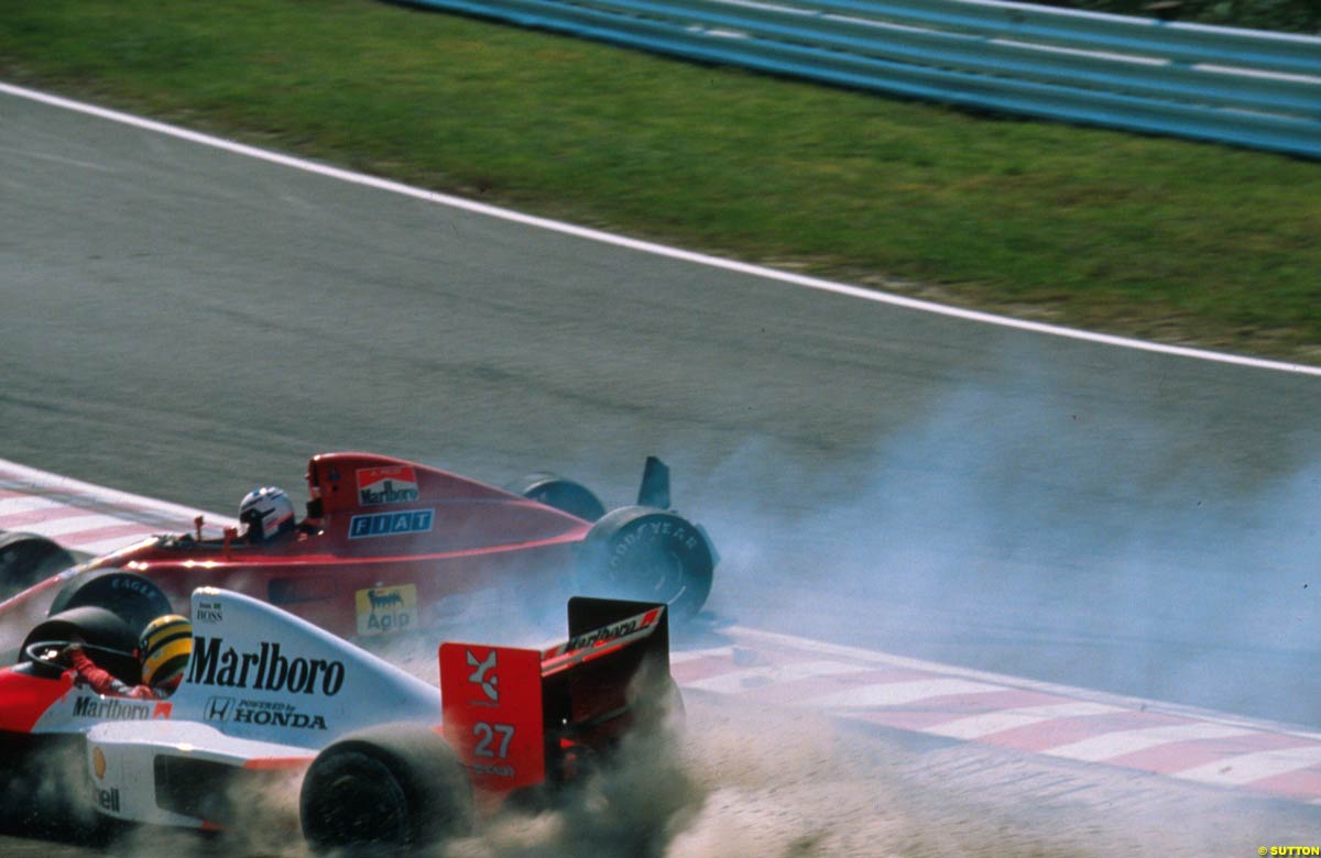 На следующий Гран-При в Испании Ferrari добилась своей второй двойной победе в чемпионате. Прост опередил Мэнселла, который позволил партнеру выйти вперед. Предпоследний этап проходил на "Сузука" и вошел в историю "Формулы-1" как один из самых скандальных, особенно для Ferrari и армии ее поклонников. По итогам квалификации Сенна стартовал с поула, а Прост - со 2го места. Однако бразилец отомстил сопернику за столкновение годичной давности на этой же трассе. На этот раз и Сенна, и Прост выбили из гонки в первом повороте. Выйграл Гран-При Нельсон Пике. Он принес англо-итальянской команде первую победу в чемпионате, которая стала двойной благодаря второму месту Роберто Морено. А Сенна оформил третий титул чемпиона. Последний Гран-При в Австралии Прост завершил третьим позади Пике и Мэнселла, а сезон закончил вторым с отставанием от Сенны в пять очков. В Кубке Конструкторов Ferrari расположилась на второй строчке после McLaren, порадовшись победам на шести Гран-При: пять на счету Проста и одна - Мэнселл.