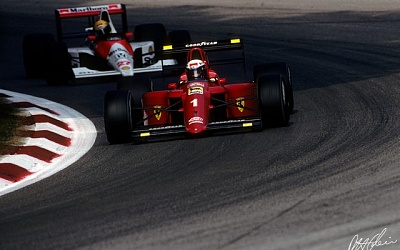 В Имоле Прост финишировал четвертым, а в Монте-Карло оба болида не закончили гонку из-за проблем с электроникой. Только в Монреале, на Гран-При Канады, Мэнселл забрал 3ю ступень пьедестала. На самом деле Герхард Бергер пересек финишную черту первым, однако получил 1 мин. штрафа за фальстарт, отбросивший его на 4е место. После этого Ferrari достигла двойной победы в Мехико - Прост и Мэнселл финишировали друг за другом, когда лидер гонки Сенна проколол шину за 6 кругов до конца. Во Франции Проста встречали, как героя - Ален блестяще провел Гран-При, опередив Ивана Капелли на Leyton House на предпоследнем круге, и принес Ferrari сотую победу.