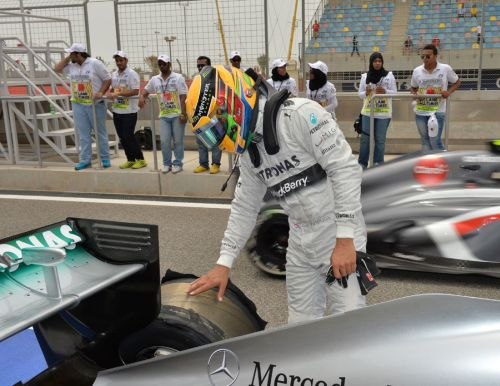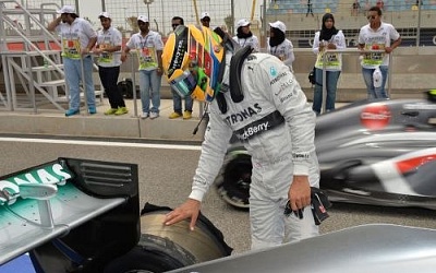 В гонке и при полных баках болид нещадно расходует резину, что лишает пилотов возможности уверенно реализовывать первые места на старте в оные на финише. Более того, даже подиумы даются с трудом. Чего стоит финиш ГП Китая, где Льюис выдрал третье место буквально на корде своих шин. Второй поул его напарника Росберга в Бахрейне, и того хуже, остался без кубка.