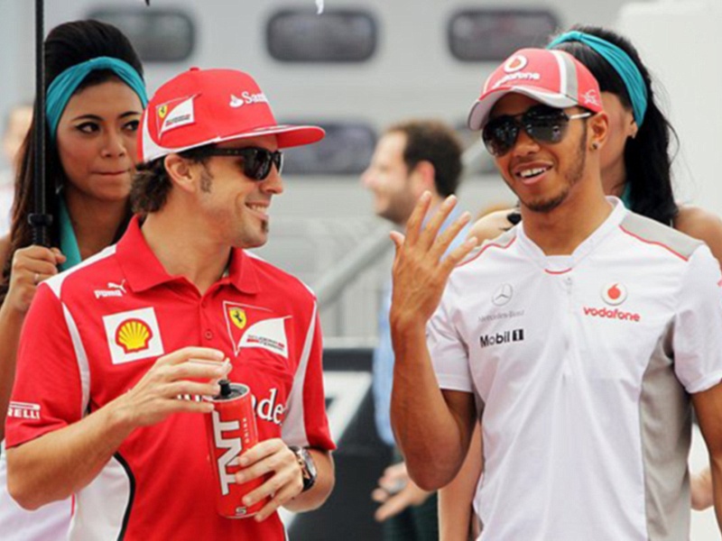 Название: Гран При Малайзии 2012 г воскресенье 25 марта Льюис Хэмилтон Vodafone McLaren Mercedes и Фернандо Алонсо Scuderia Ferrari победитель гонки