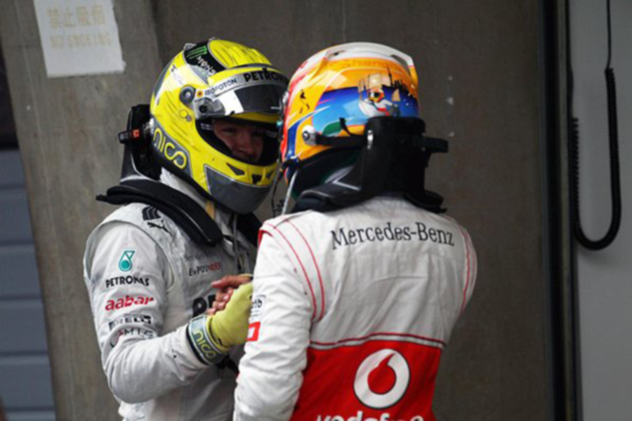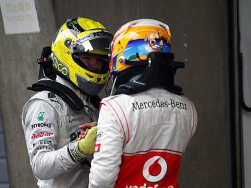 Название: Гран При Китая 2012 г воскресенье 15 апреля победитель гонки Нико Росберг Mercedes AMG Petronas и Льюис Хэмилтон Vodafone McLaren Mercedes
