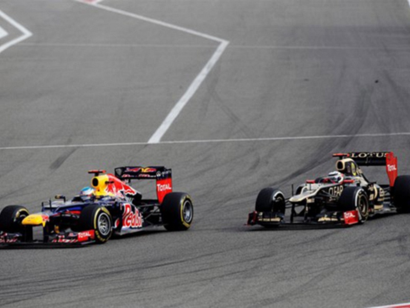 Название: Гран При Бахрейна 2012 г воскресенье 22 апреля победитель гонки Себастьян Феттель Red Bull Racing и Ромэн Грожан Lotus F1 Team