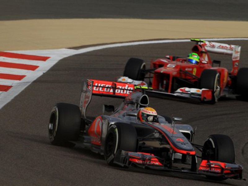 Название: Гран При Бахрейна 2012 г воскресенье 22 апреля Льюис Хэмилтон Vodafone McLaren Mercedes и Фелипе Масса Scuderia Ferrari