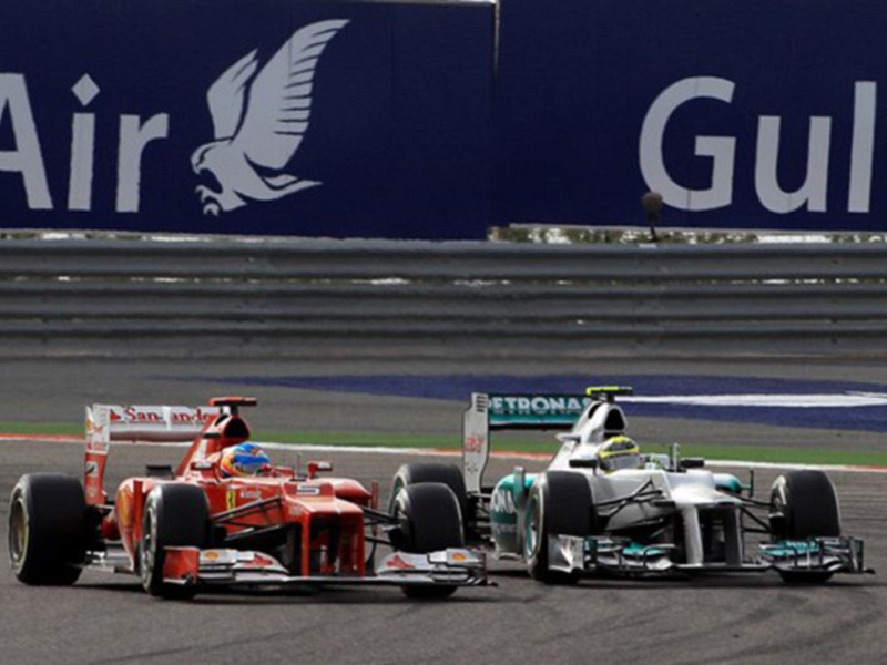 Название: Гран При Бахрейна 2012 г воскресенье 22 апреля Фернандо Алонсо Scuderia Ferrari и Нико Росберг Mercedes AMG Petronas