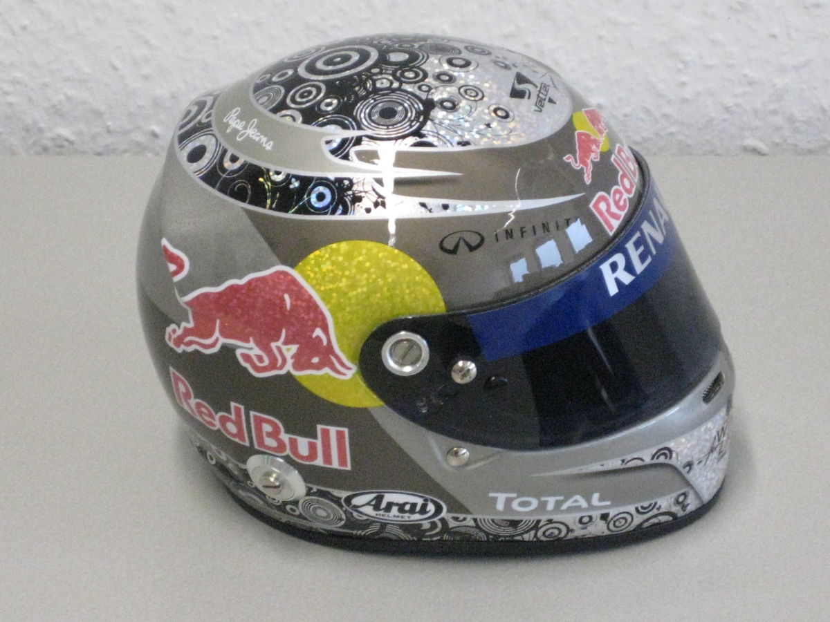 Копия особого шлема Себастьяна 2010-ого года. Каждый поклонник юного немца помнит тот момент, когда Себ впервые стал чемпионом мира. Драматический гран-при Абу-Даби 2010 года.