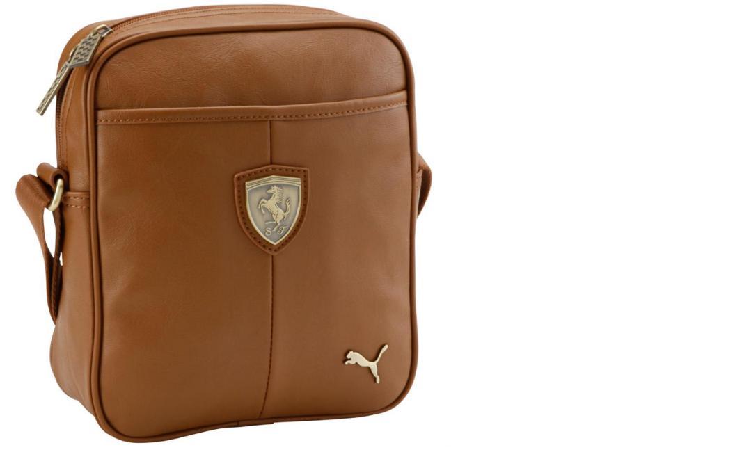 Стильная сумка на плечо с одним главным отделением и одним вспомогательным спереди на липучке. Внутри есть несколько небольших карманов, в т.ч. карман для мобильного телефона. Замочек из металла на кармане стилизован под тематику автогонок. Лого Ferrari и лого Puma спереди.